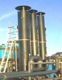 A vertical scrubber made of PE to remove different acids such as formic acid, hydrochloric acid and sulphuric acid from the air stream. Neutralization by caustic liquor.